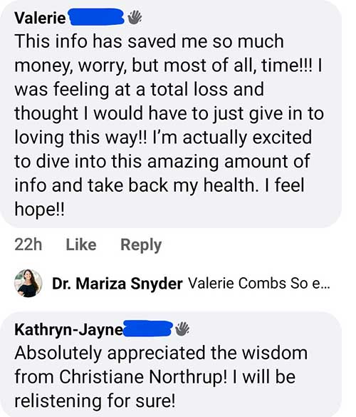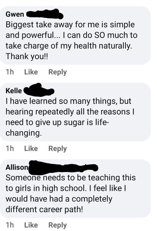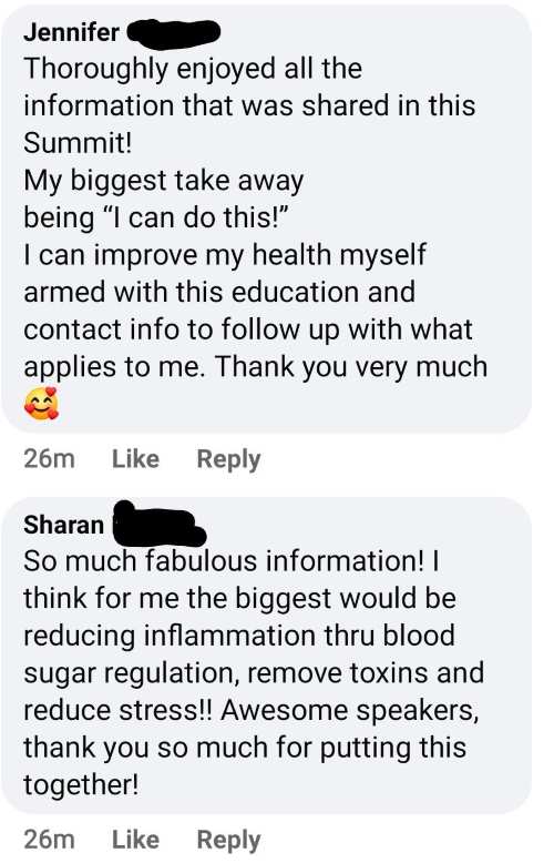 “I bought the VIP pass, so I can listen as many times as I want! I am also looking forward to the book. The biggest thing is that sugar is such a huge problem and that it contributes to so many symptoms.